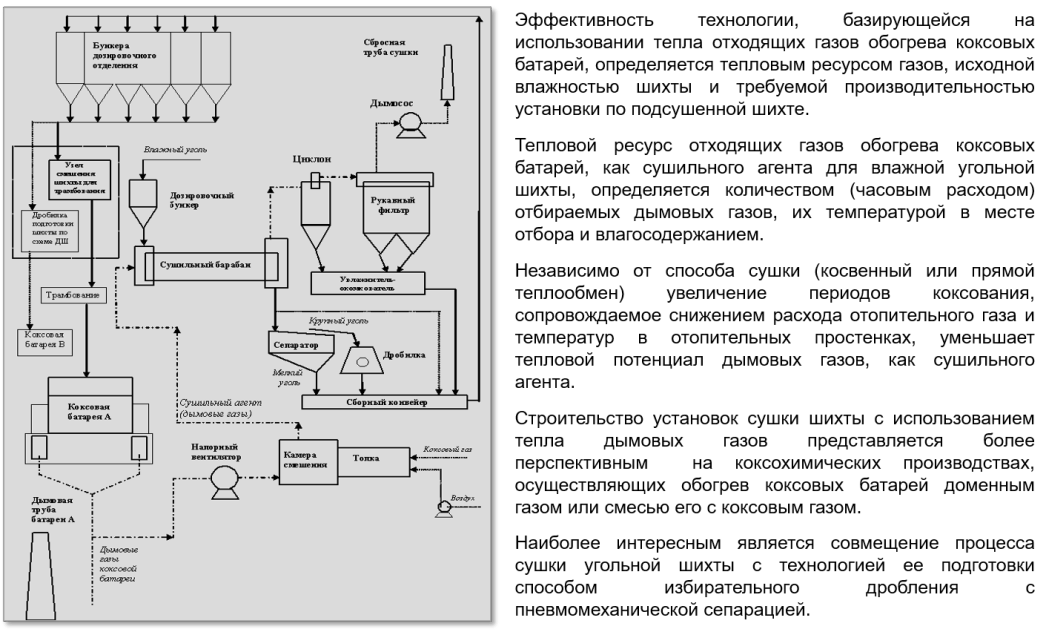 Сушка углей, сепарация и избирательное дробление углей при подготовке шихты для коксования